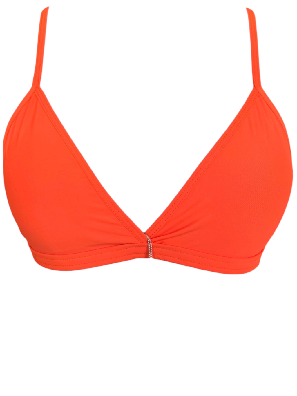Top triangular fixo, com alças que podem ser usadas tanto tipo sutiã como amarradas no pescoço. Alças com regulagem. Fecho de amarração nas costas. Bojo removível. Material: 84% Poliamida 16% Elastano.